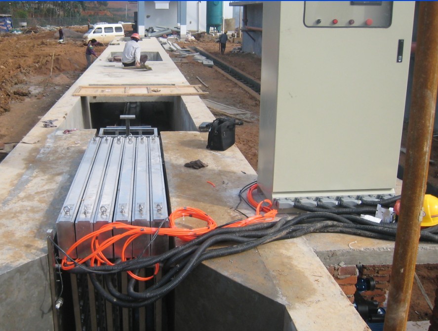 紫外消毒設(shè)備采用模塊化設(shè)計,安裝、維護(hù)均可用吊車吊離水面,維護(hù)或檢修時無需中斷整個系統(tǒng)的運行。同時,即使一個消毒模塊出現(xiàn)故障也不會影響其他消毒模塊的運行,只需將發(fā)生故障的消毒模塊吊起維修或更換即可。
